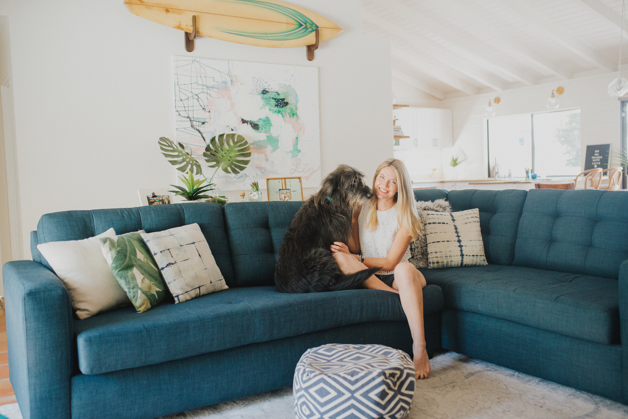 Liz Swenson is a self taught painter who loves color, texture, and unique perspectives. A lover of many styles, she explores whichever aesthetic she fancies at the moment. Liz was raised on San Clemente beaches and now raises her own family here as well. You can see the casual surf and sand vibe in all of her pieces and interior design.